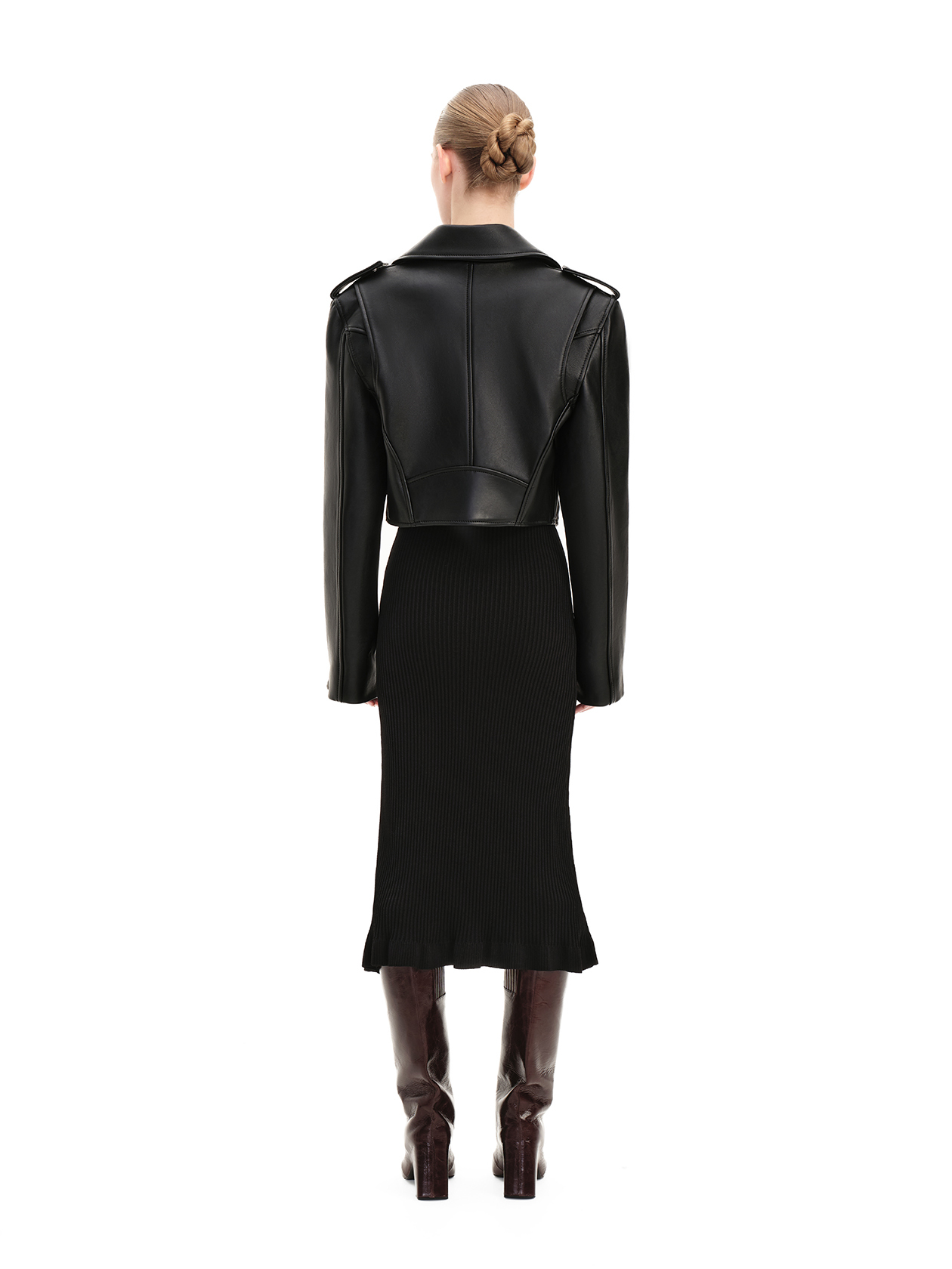 Модель Blade Jacket отличается ярко выраженный маскулиным треугольным силуэтом и изысканным ощущением. Укороченная модель с объемными плечами сделана из плотной овечьей кожи Nappa. Подчеркните элегантность этой модели с помощью брюк или драпированной юбки.