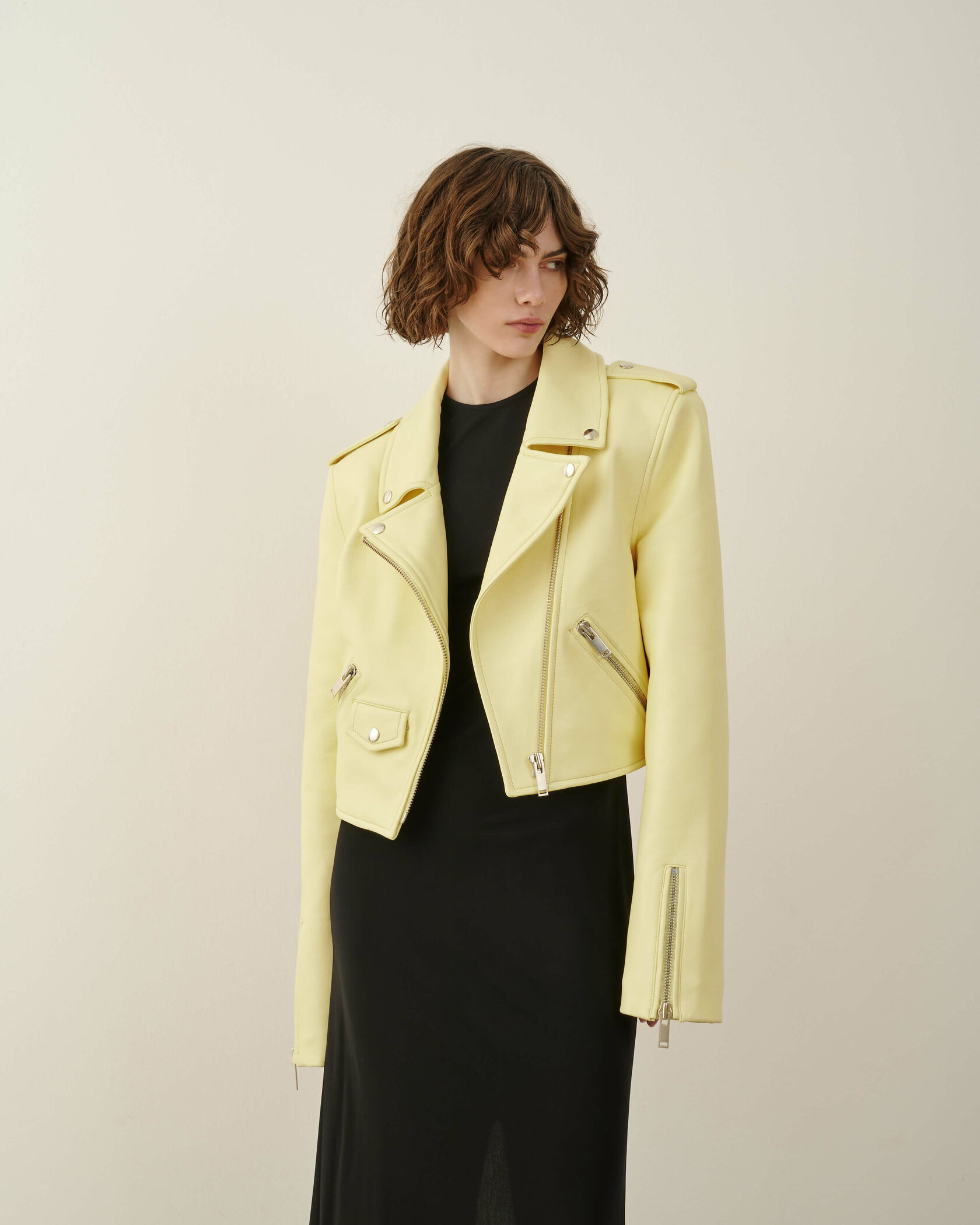 Укороченная косуха Blade Lemon Jacket изготовлена из 100% натуральной плотной овечьей кожи. Этот тип кожи хорошо держит форму и ведет себя в носке. Металлические японские молнии Ykk, подклад из прочной натуральной вискозы.