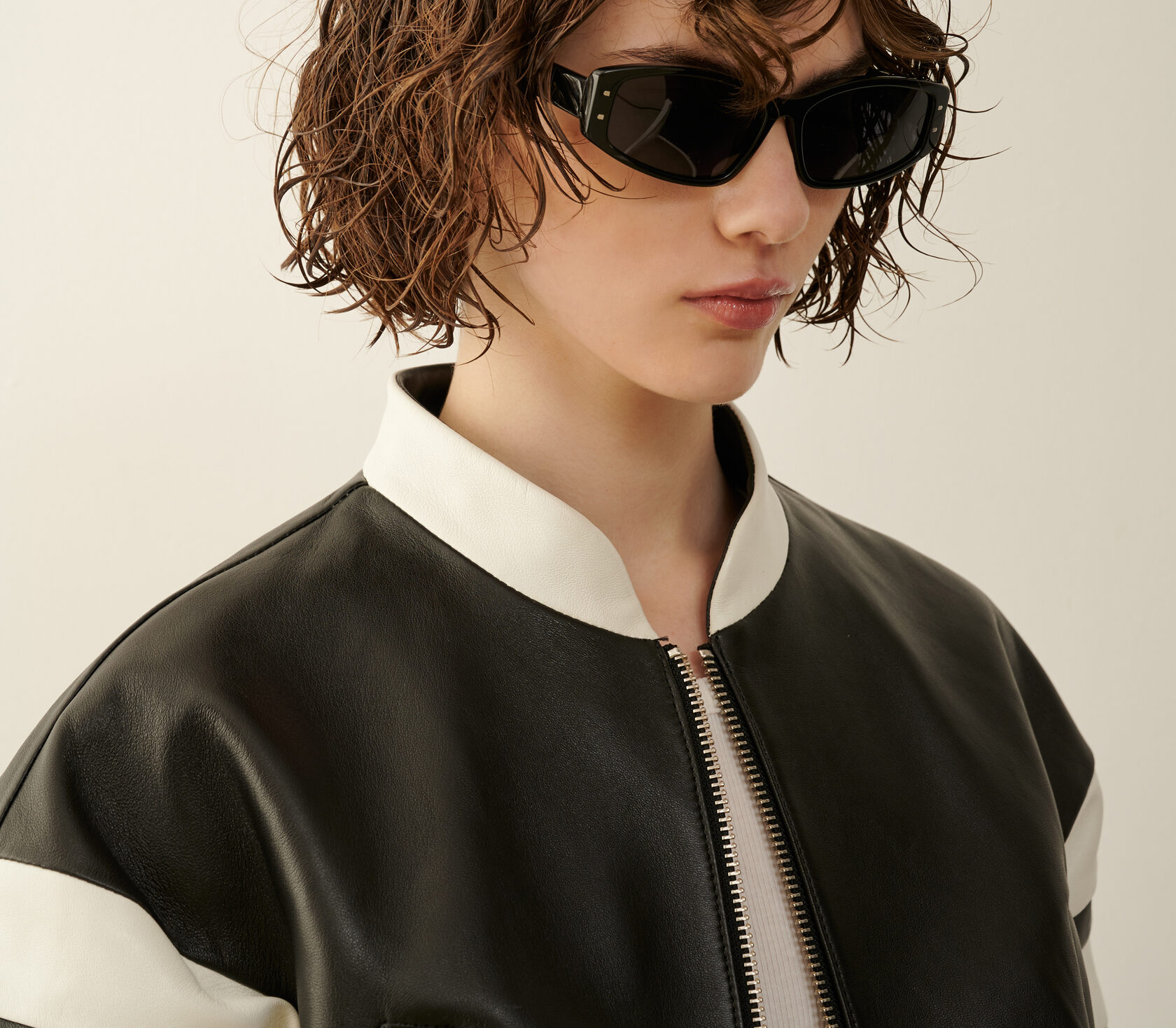 Укороченная модель Cropped Bomber изготовлена из 100% натуральной овечьей кожи в артикуле Nappa. Этот тип кожи хорошо держит форму и ведет себя в носке. Металлическая японская молния Ykk, подклад из прочной натуральной вискозы и мягкие вставки на рукавах и талии.