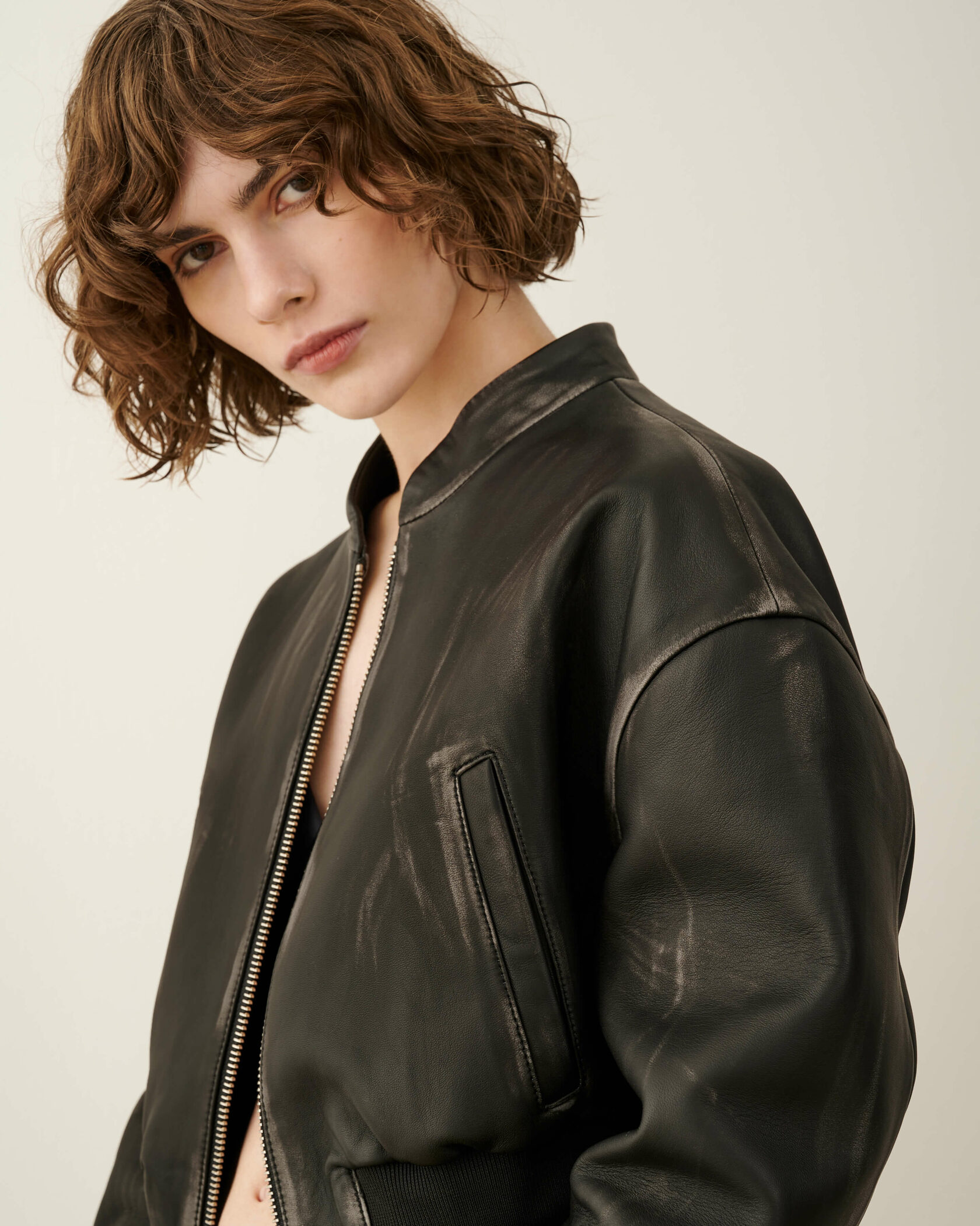 Укороченная модель Cropped Bomber изготовлена из 100% натуральной овечьей кожи в артикуле Nappa.