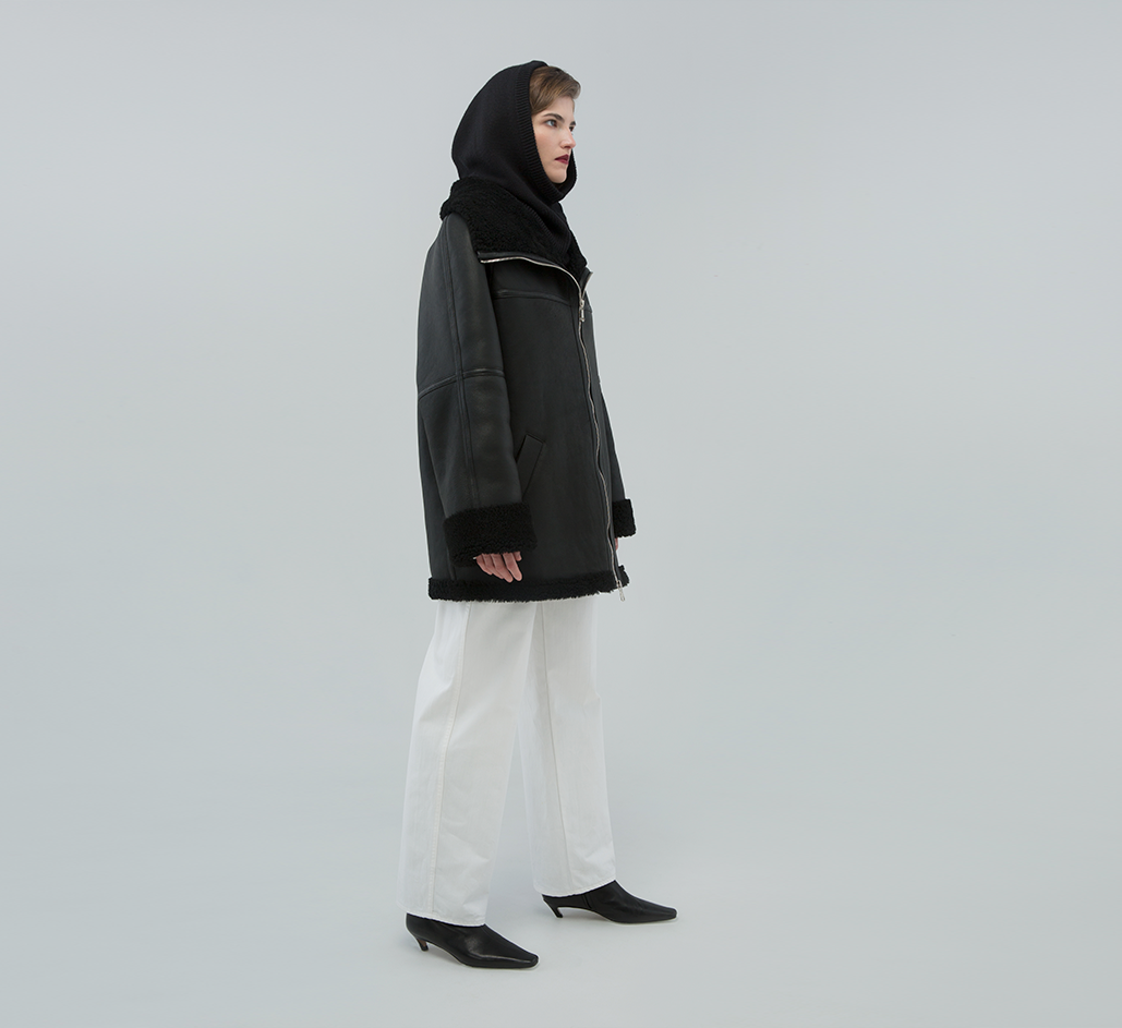 TULIP BLACK SHEARLING COAT